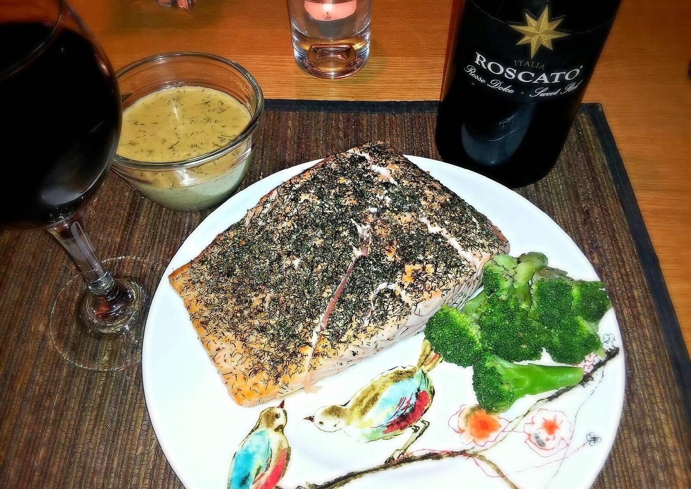 Dill Seared Salmon Fillet w Wasabi Cream Sauce