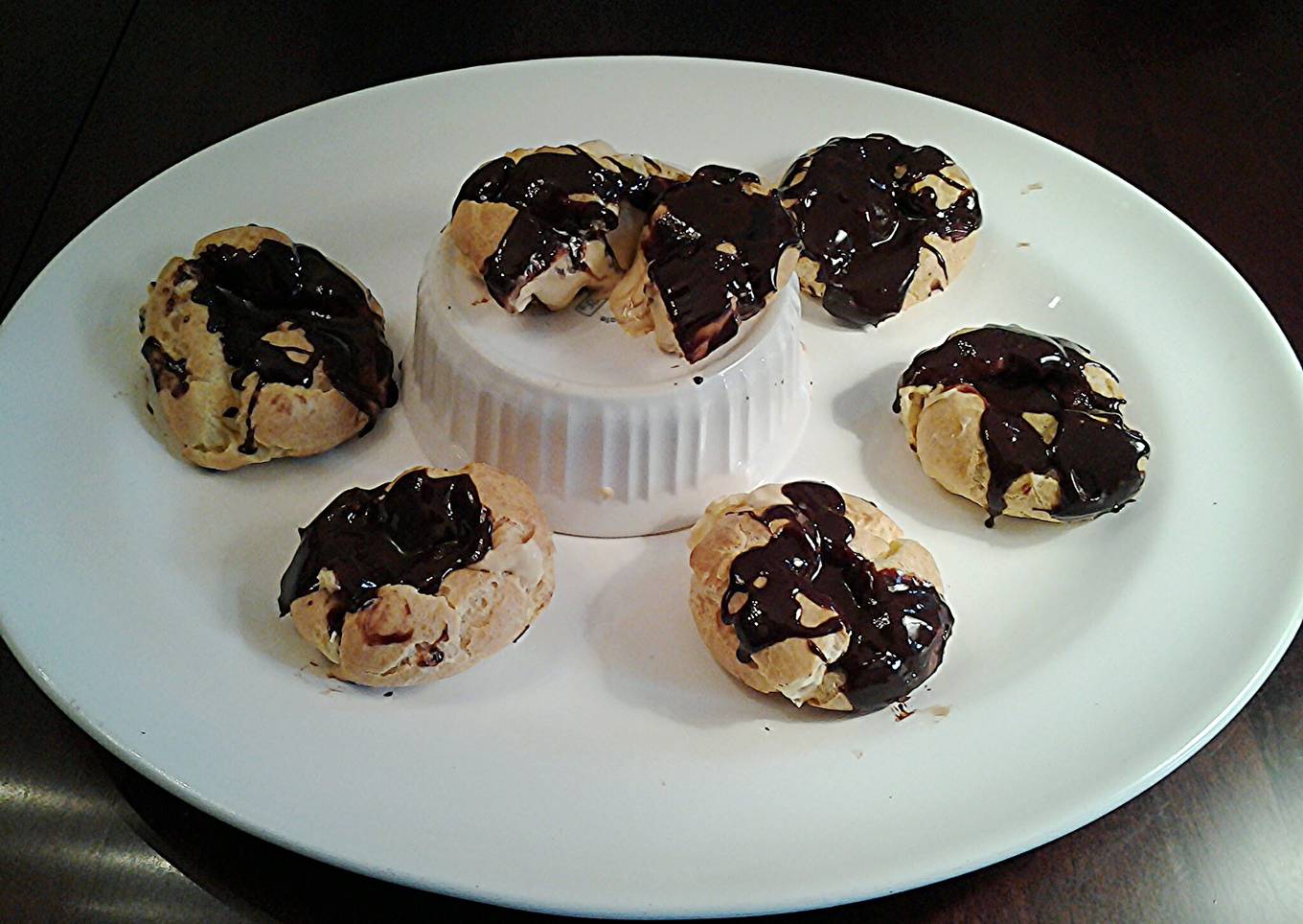 Salted -Caramel Cream Puffs with Chocolate Ganache Glaze