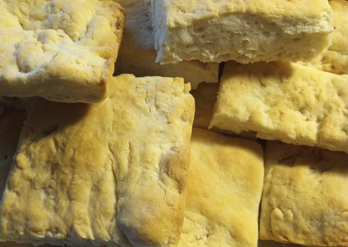 An easy delicious recipe. Sometimes it's easier to do cut Biscuits because you can determine the portion size to how hungry each person is. It resembles a giant cake biscuit. Then you can either cut them all or portion them as needed.