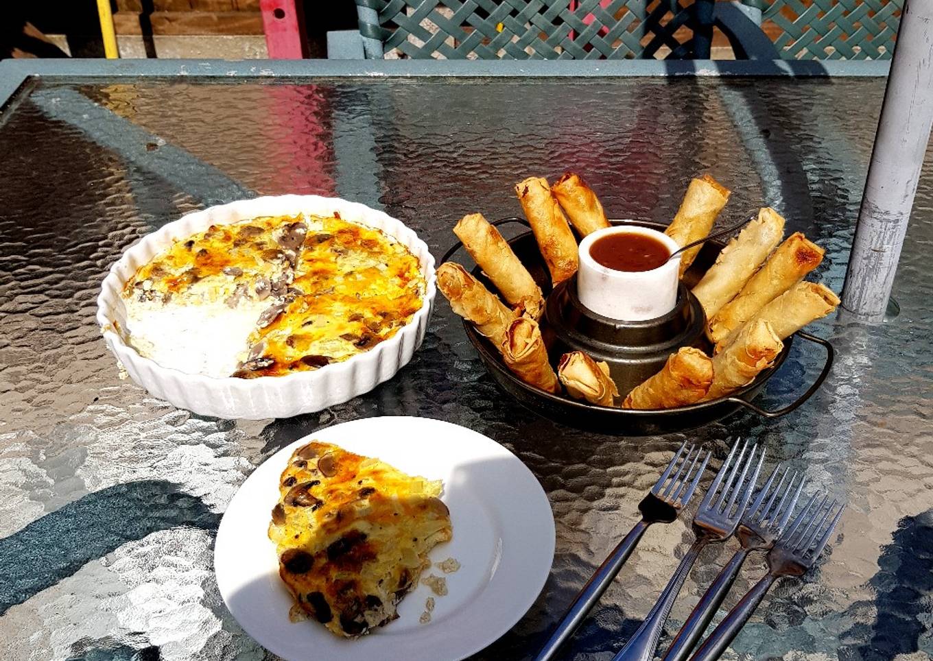 I am so happy with this challenge of outdoor eating. I put it out on the table and out they come. I made some crispy duck and some Hoisin dip to go with the Quiche. #Summerchallenge1 #Lunch