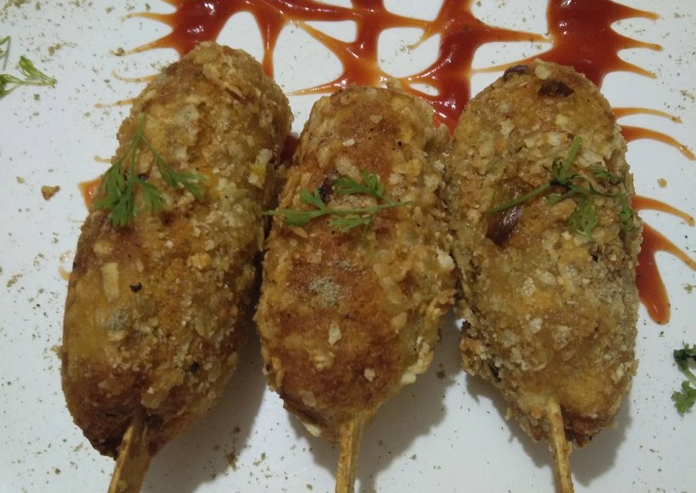 - Now apply slurry on lollipop s roll it on flattened rice flour and and dip fry till golden brown. becomes very crispy.I made lolipop so dipfried it if you make cutlets you can shallow fry.both tastes yum.
