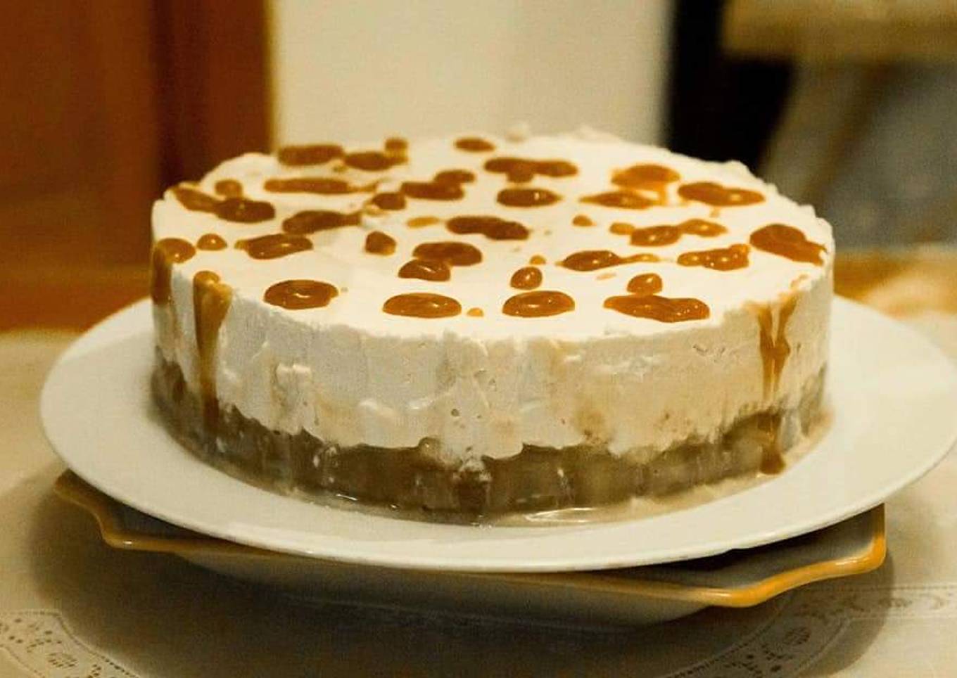 - Pour the mix into the cookie-caramel-banana base. Even the surface with a spatula then freeze for at least 4 hours or until set.