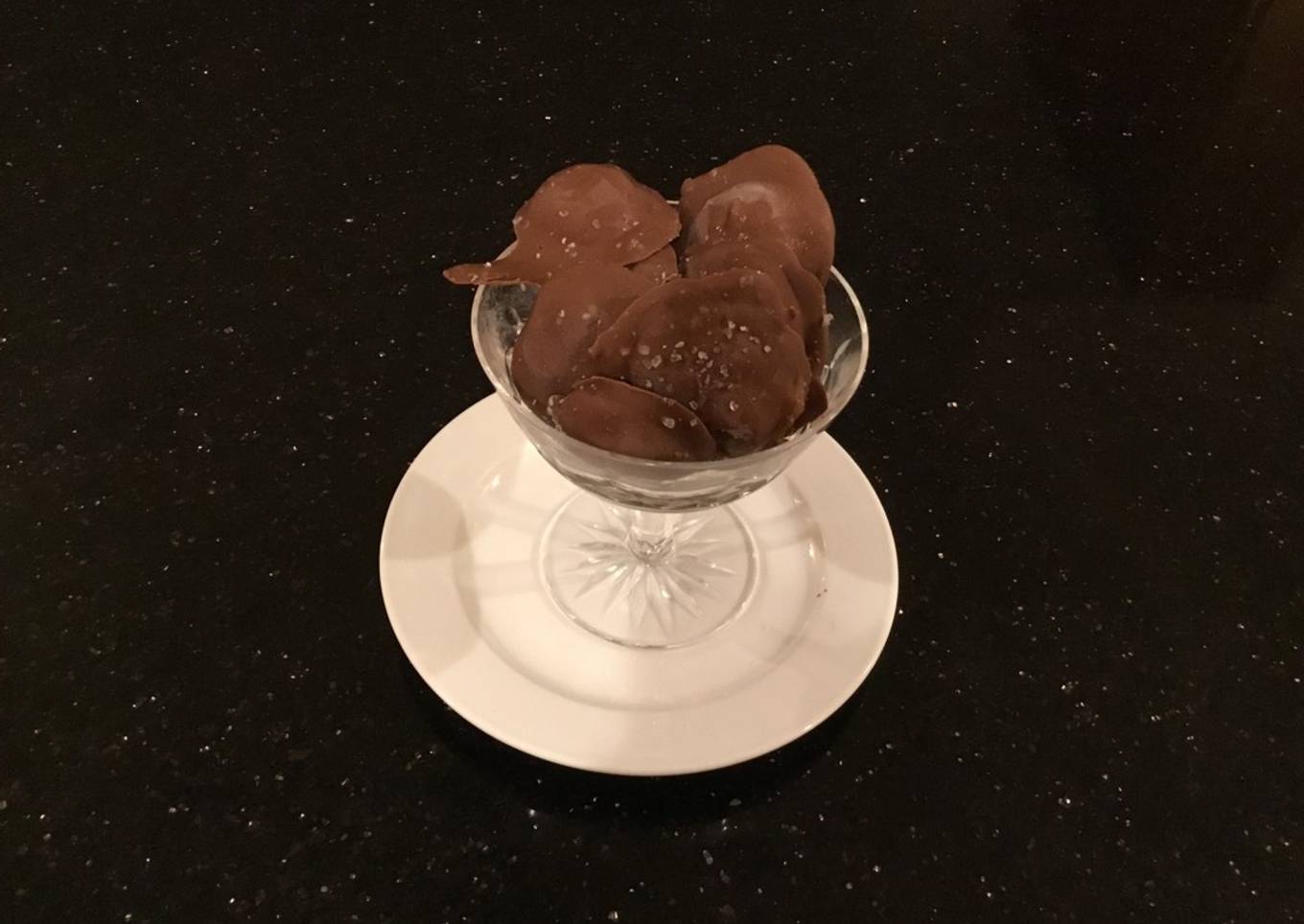 - Place on parchment, sprinkle each with a few grains of sea salt while chocolate is wet. Refrigerate to set chocolate. Sore in the refrigerator.
