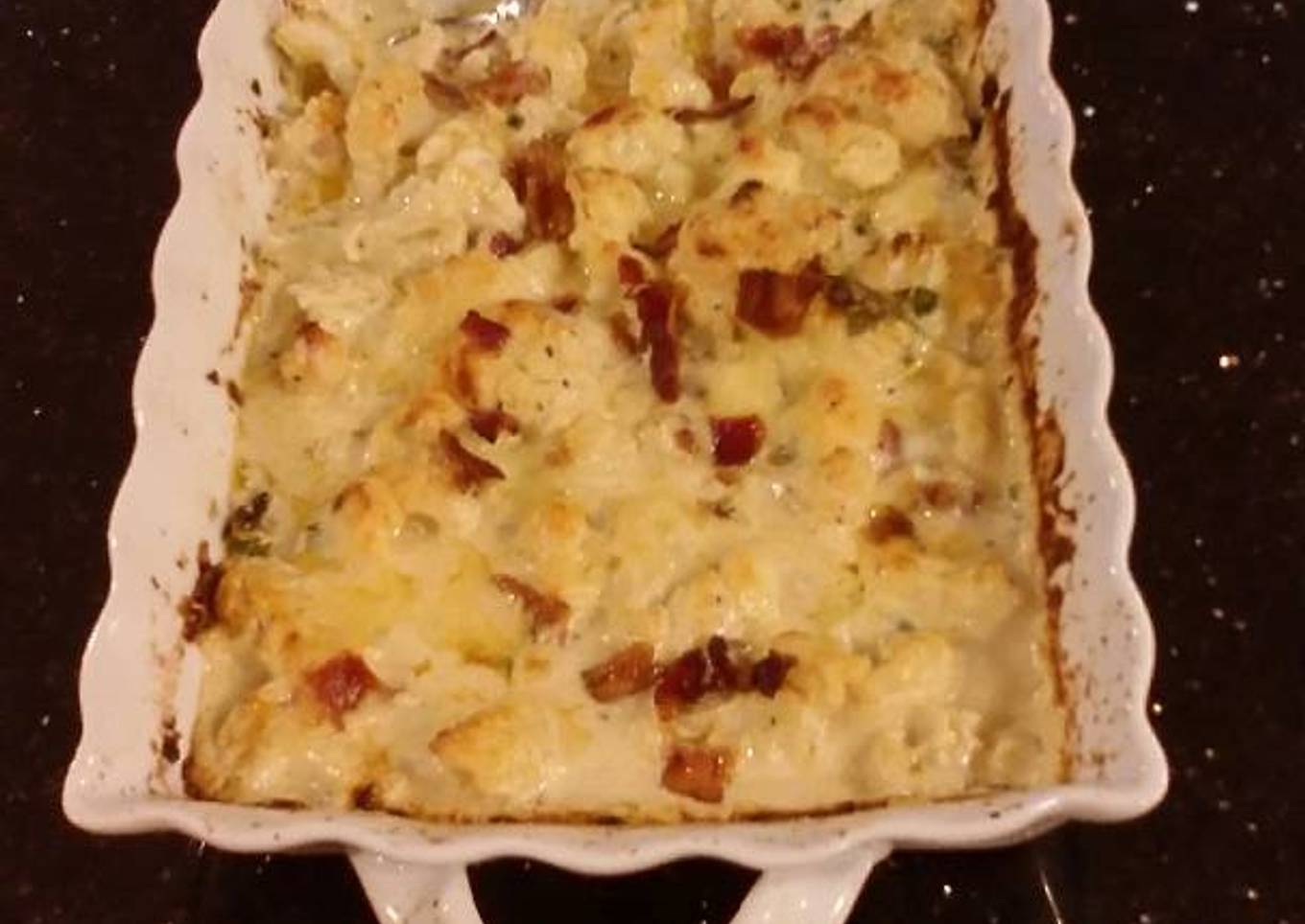 Cauliflower, the iconic vegetable that stands in for all sorts of foods is featured here in a "mac" and cheese dish. Rich, creamy and so delicious with cauliflower standing in for the pasta!