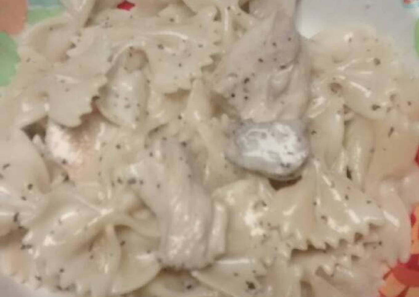 This is one of my favorites. A creamy garlic basil sauce over grilled chicken, mushrooms, and bowtie noodles. Easy, quick, and delicious. A great weeknight meal.
