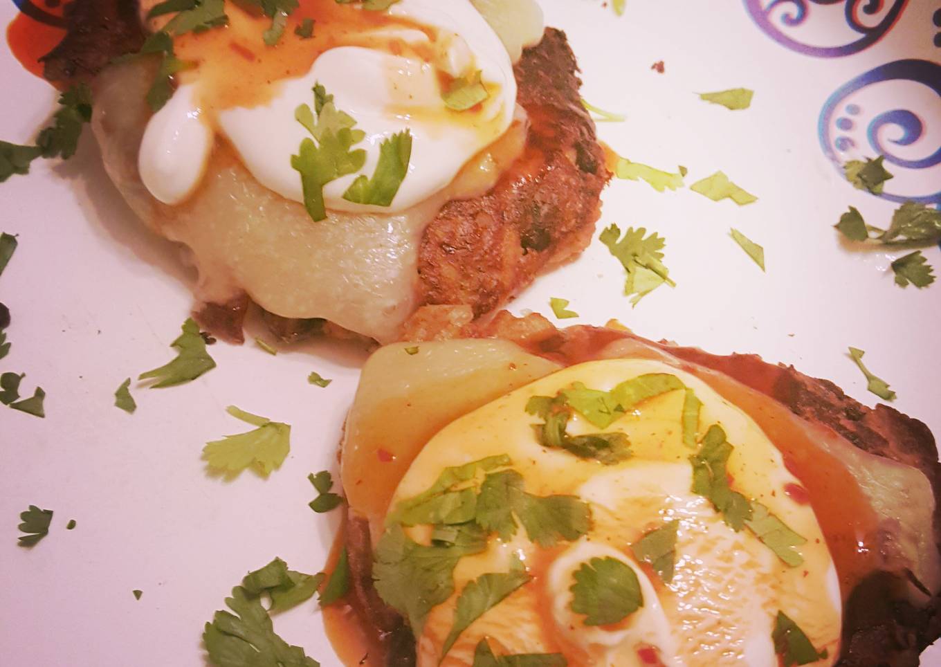 - Garnish with avocado, tomato, cilantro and sour cream